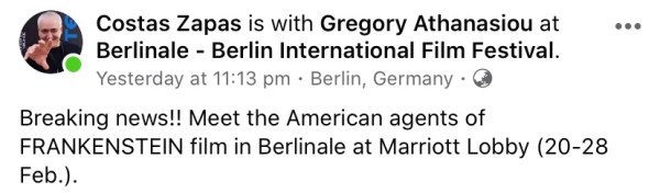 The US official poster of Costas Zapas film Frankenstein by Panagiotis Rappas. Share this: Share on X (Opens in new window) X Share on Facebook (Opens in new window) Facebook Share on LinkedIn (Opens in new window) LinkedIn Like Loading... February 1, 2020 0
